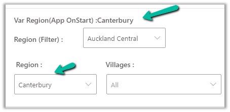 Next in App’s OnStart, we are setting the GUID of the record to a variable first, and than setting another variable to store the GUID of the Region lookup field on that record.