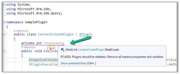 PCA002: Plugins should be stateless. Remove all instances properties and values.