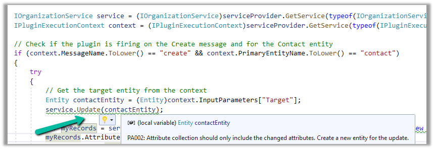 PA002: Attribute collection should only include the changed attributes. Create a new entity for the update