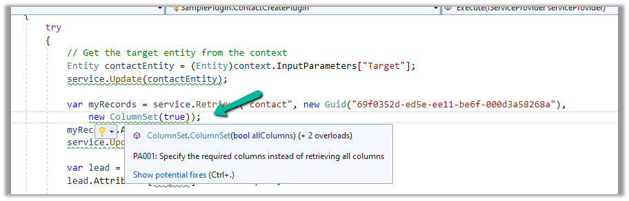 EBEA002: Late bound entities should be replaced with early bound entities.