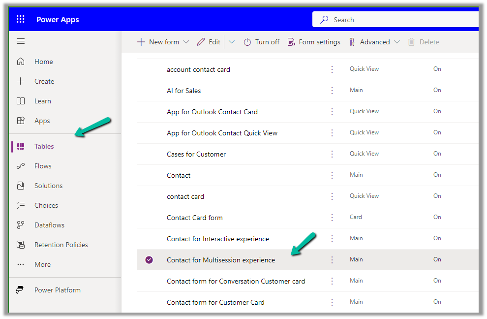 Back in our preferred solution, we can see the form we updated, automatically added.
