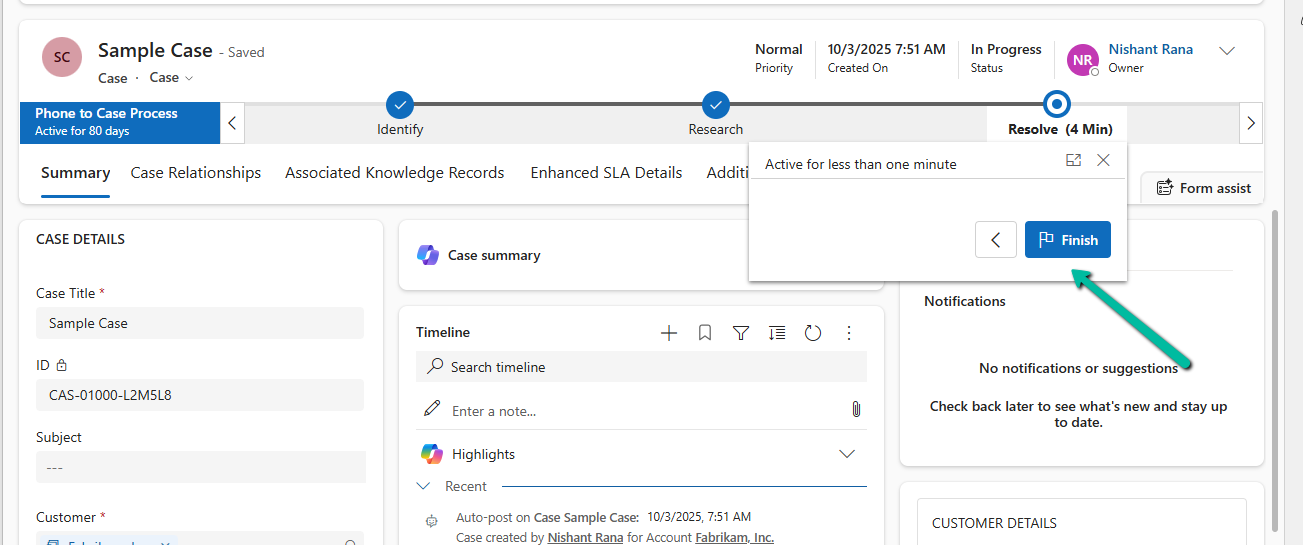 In the previous post, we explored how to move a Business Process Flow (BPF) to the next stage using a console application, with the Phone to Case Process as a working example. Advancing the BPF stage, however, is only part of the lifecycle. Even after the flow reaches its final stage, it remains active until it is explicitly finished. In the Dynamics 365 UI, this is done by clicking the Finish button. In this post, we’ll continue from where the previous one left off and look at how to finish (deactivate) and reactivate the same Phone to Case Business Process Flow programmatically using C#.