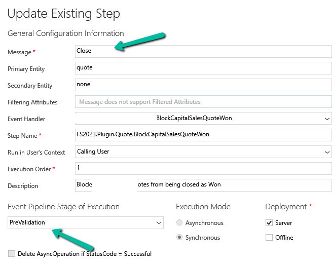 We initially registered our plugin on the Close message in the PreOperation stage. The logic was simple: detect the Lost status, set the quote back to Draft, and throw an exception to cancel the close operation.