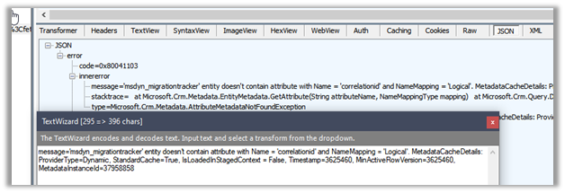 message=’msdyn_migrationtracker’ entity doesn’t contain attribute with Name = ‘correlationid’ and NameMapping = ‘Logical’. MetadataCacheDetails: ProviderType=Dynamic, StandardCache=True, IsLoadedInStagedContext = False, Timestamp=3625460, MinActiveRowVersion=3625460, MetadataInstanceId=37958858