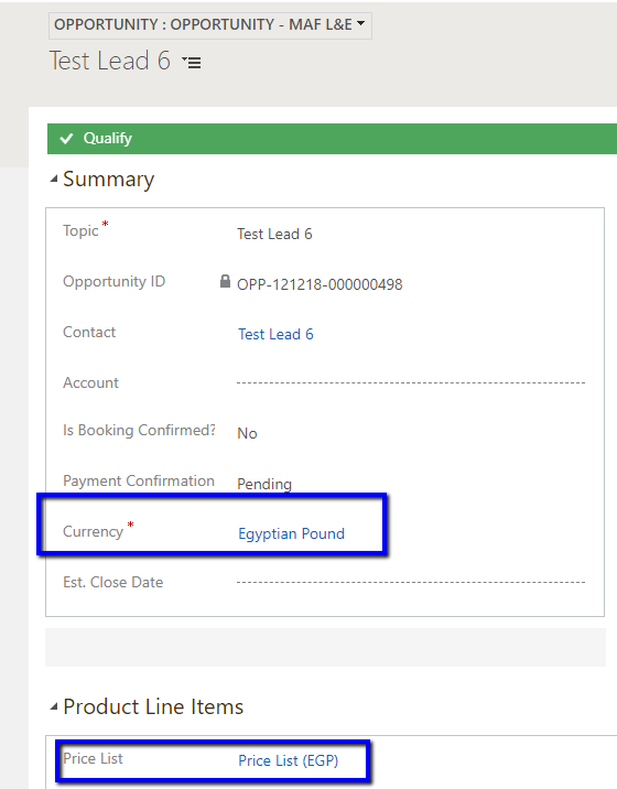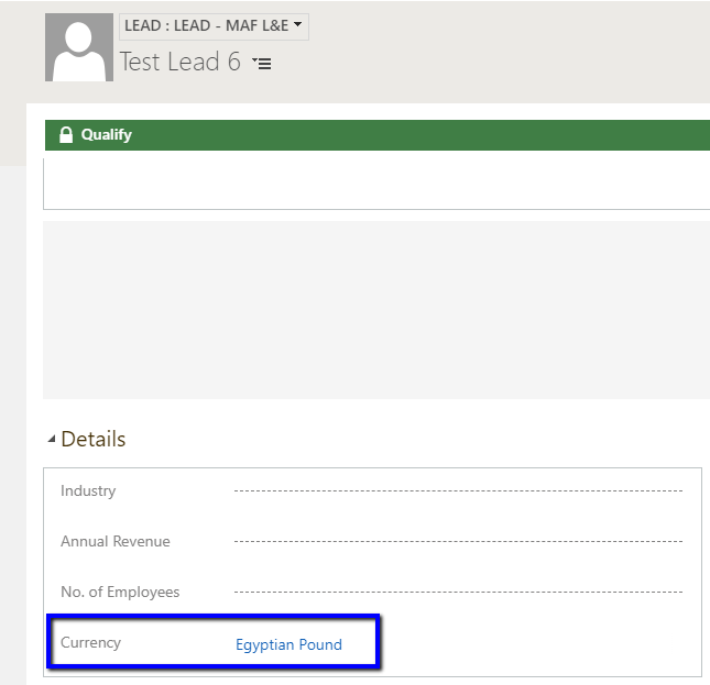AED(Base currency in our case) and Egyptian Pound. We used Egyptian Pound currency on Lead while creating.
