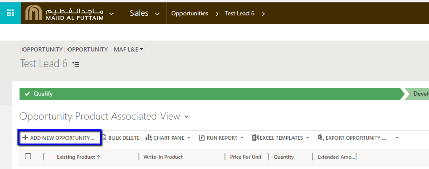 After qualifying lead, we added Opportunity Product to the Opportunity from Related entities –> Add New Opportunity Product.