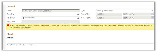 On opening the system job, there was no detail for the error.