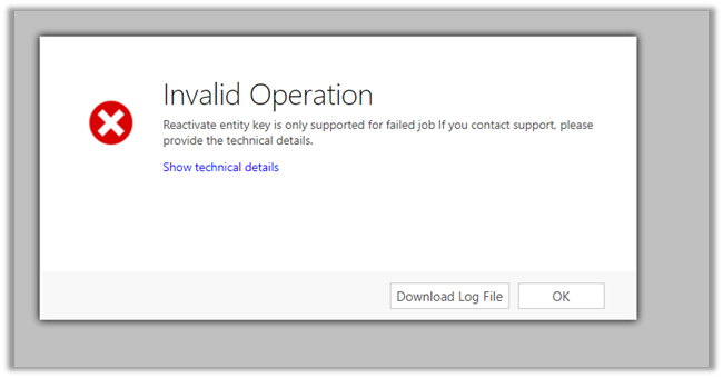However, that threw a new error that “Reactivate entity key is only supported for failed job.”