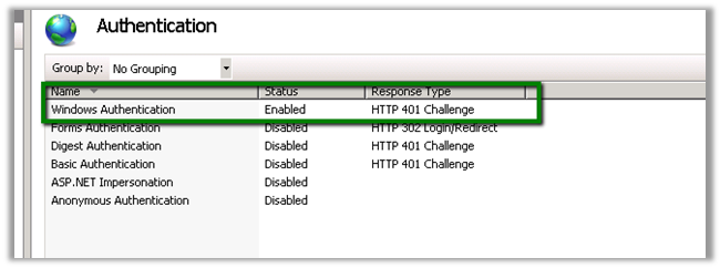 And enable Windows Authentication in IIS