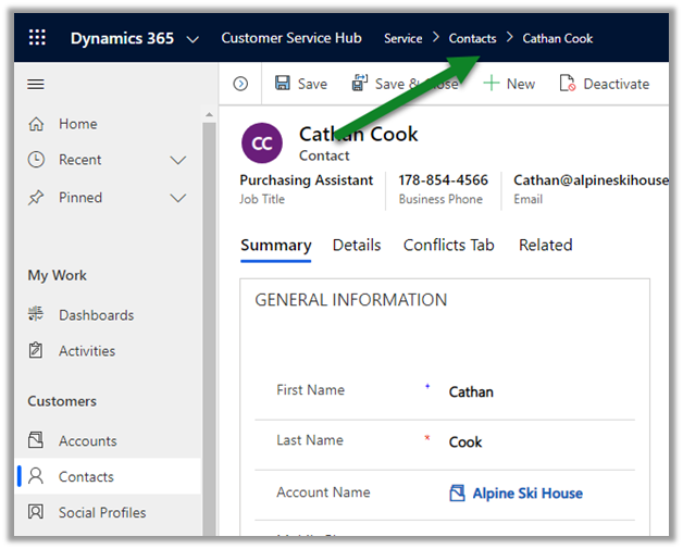 On creating a duplicate contact record with the same last name and first name, the dialog box opens up.