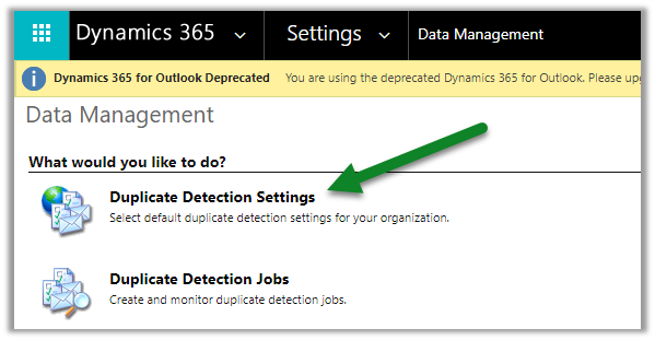 To enable it, navigate to – Settings > Data Management > Duplicate Detection Settings