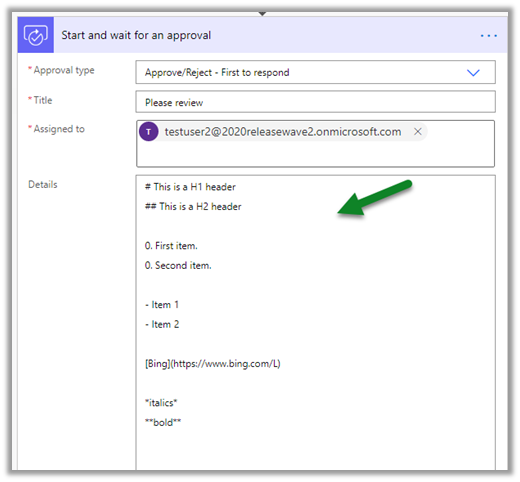 Continuing our previous basic approval flow, here we’d update it to send an approval request to the manager of the user.