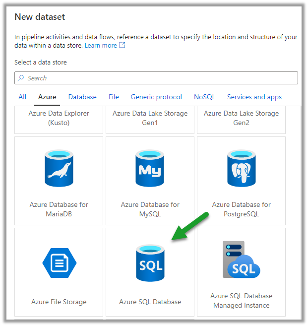 Select Azure SQL Database as the source dataset.