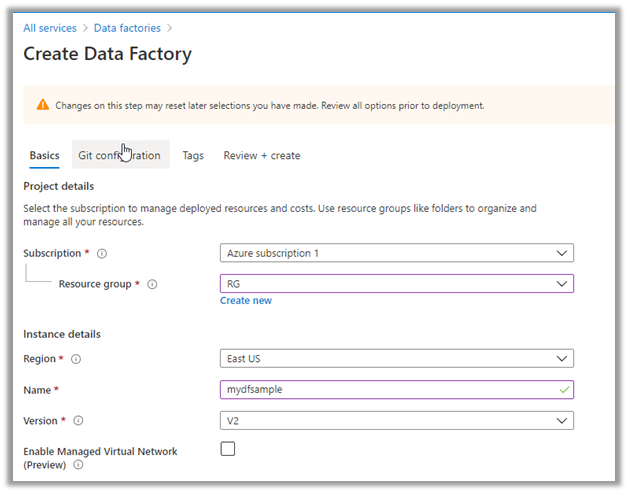 Create a new data factory instance