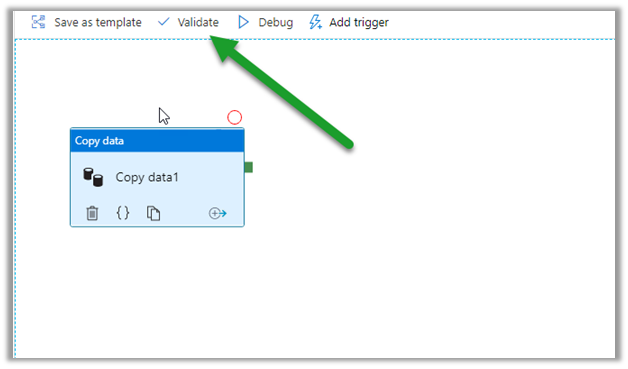 Click on Validate and after successful validation, click on Debug to run the pipeline.