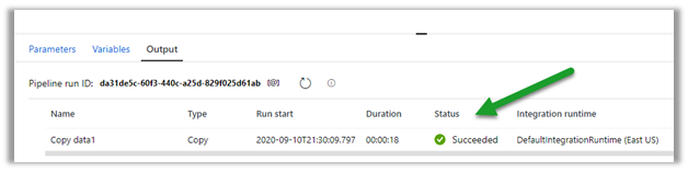 Within the Output window, we can see the status.