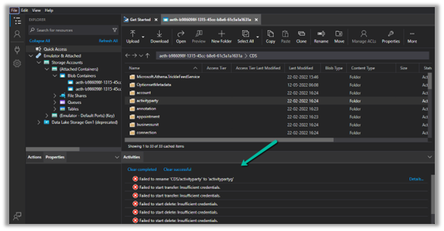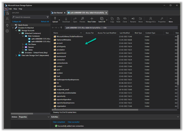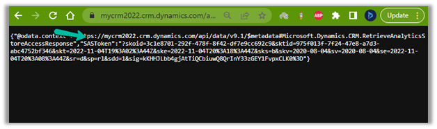 <a href="https:///api/data/v9.1/RetrieveAnalyticsStoreAccess(Url=@a,ResourceType=’Folder’,Permissions=’Read,List’)?@a=’/CDS”>https://<EnvironmentURL>/api/data/v9.1/RetrieveAnalyticsStoreAccess(Url=@a,ResourceType=’Folder’,Permissions=’Read,List’)?@a='<ContainerURL>/CDS’