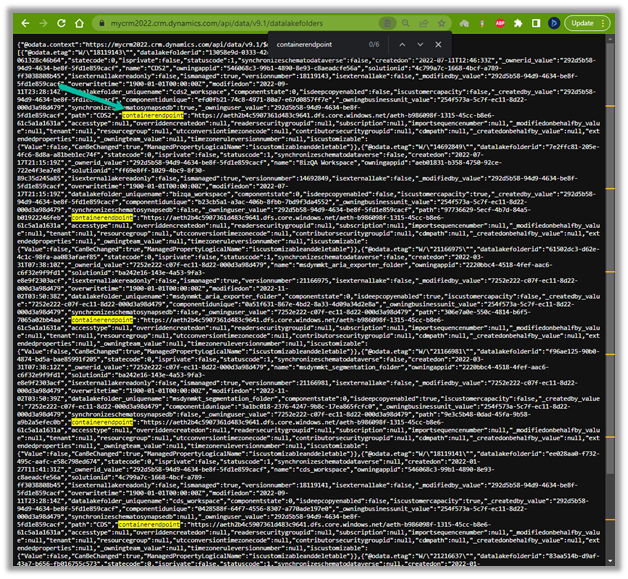ContainerURL = <a href="https:///api/data/v9.1/datalakefolders”>https://<EnvironmentURL>/api/data/v9.1/datalakefolders