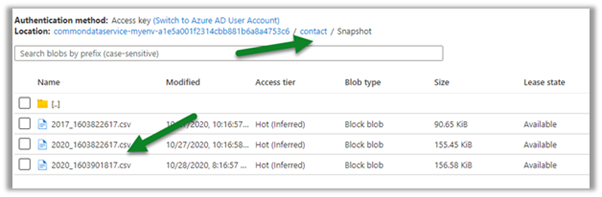 Within mydatalakegen (StorageV2 (general purpose v2)), we have All Contacts.csv with the mycrmcontainer.