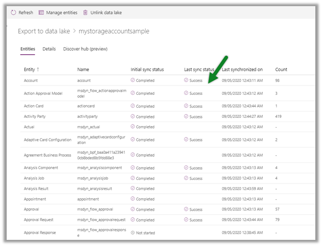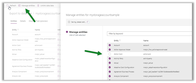 Clicking on save will link the CDS environment with Azure data lake storage.
