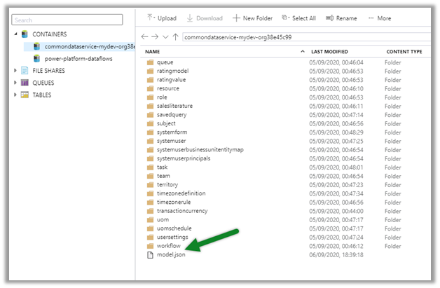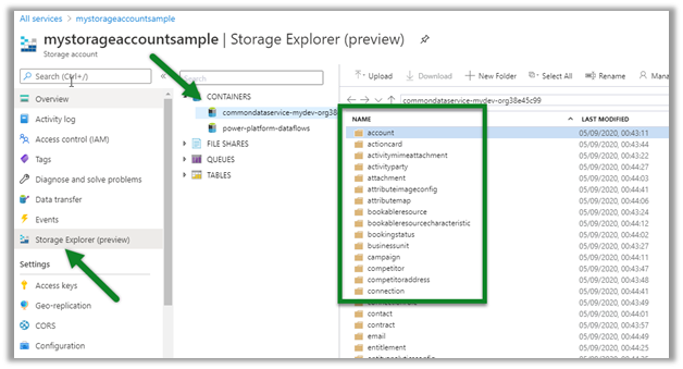 It will create the file system in the Azure storage account having a folder for each entity selected.