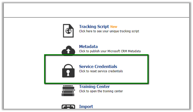 Go to Settings à ClickDimensions Settings à Service Credentials.