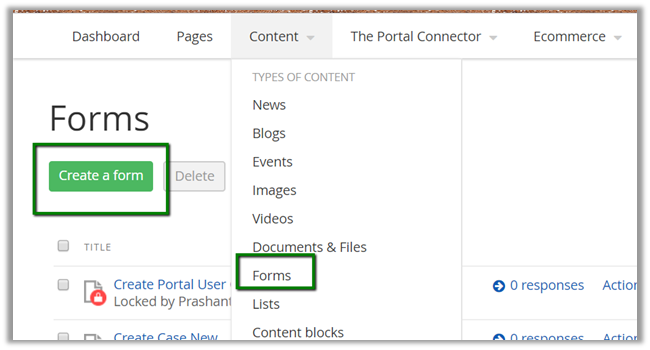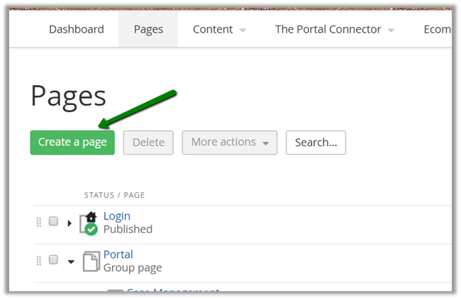 Next we need to create a Page wherein we’d display this form. Go to Pages and click on Create a page.