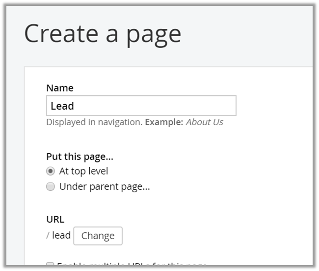 We have created a page named Lead.