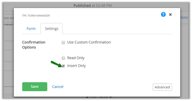 Select Insert Only check box.