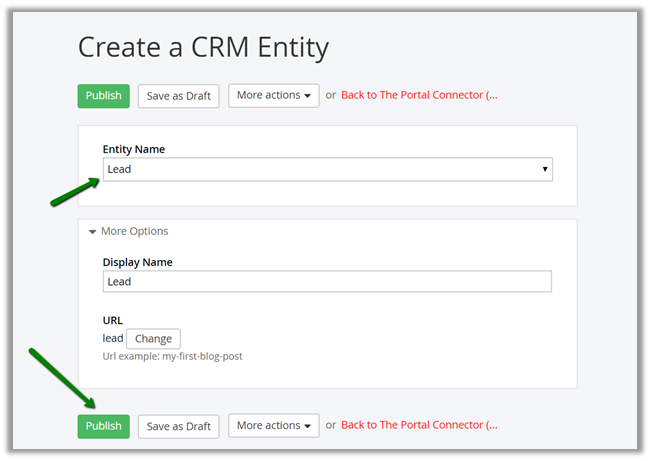 Go to CRM Entities and click on Create a CRM Entity.