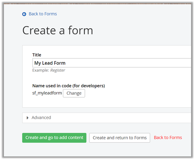 Once our lead is setup, we’d create the form.