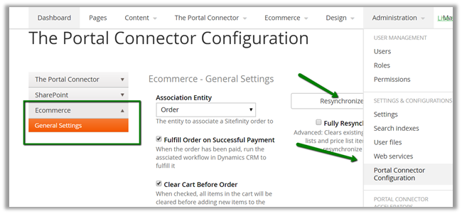 Once value is specified, go to administration – portal connector configuration and click on Resynchronize to update the product record in the portal.