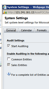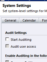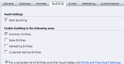 For the entity it is not enabled by default, we need to check the Auditing checkbox to enable it. However there we again see a message below that asks us to enable auditing for the organization first.