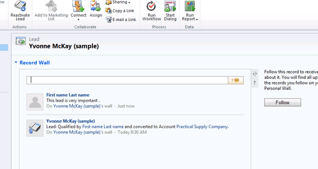 Now let us change the topic field in our lead record and check its audit history. (From the left navigation pane of the record’s form)