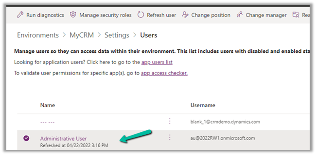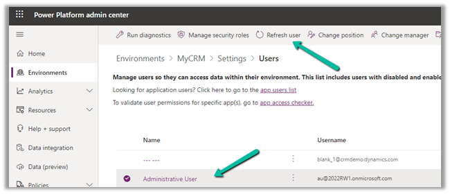 However, here we can also use the Refresh User option in Power Platform Admin Center to force the synchronization instead of waiting.