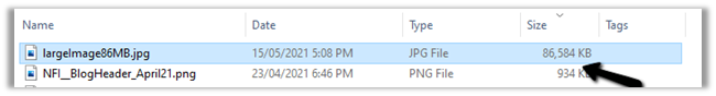 In case of File Column 2, we get the below error message as its size exceeds 16 MB à