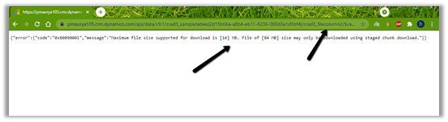 {“error”:{“code”:”0x80090001″,”message”:”Maximum file size supported for download is [16] MB. File of [84 MB] size may only be downloaded using staged chunk download.”}}