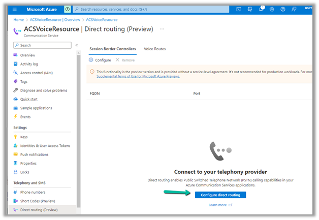 If Voice Calling (PSTN) is not available in the region or if we want to use a different PSTN carrier we can opt for Azure direct routing. The advantage of Azure direct routing is that we can use a telephony carrier of our choice, by connecting Azure Communication Services to the supported SBC – Session Border Controller.