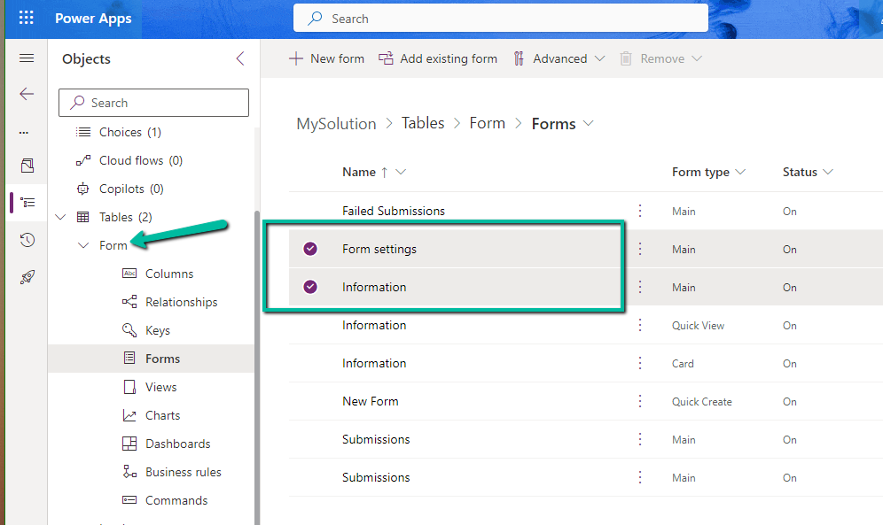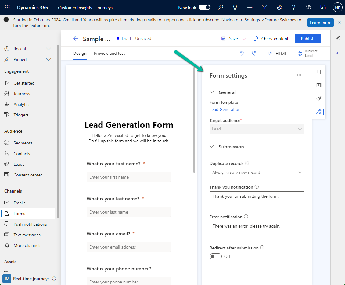 Open an existing marketing form or create a new one.