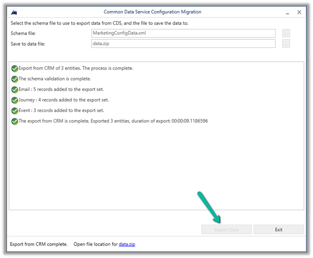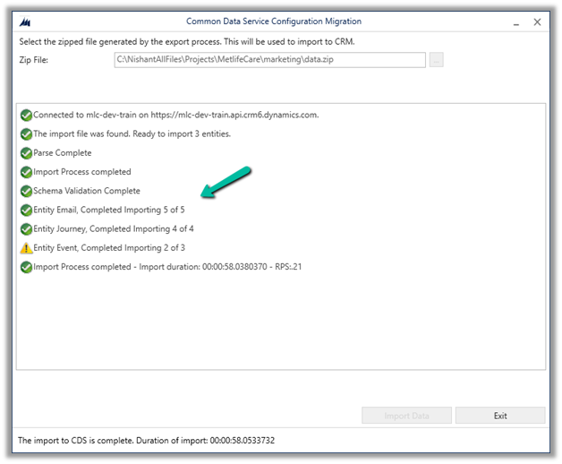 Next with the schema and data exported, select Import Data to start the import and select destination organization.