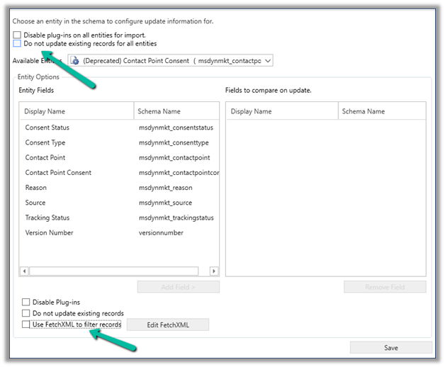 In case we want to filter the records or want to make sure records are not updated in the destination, we can select Tools >> Configure Import Settings