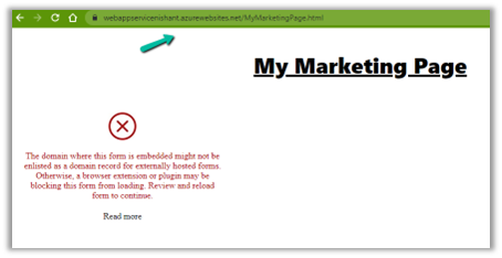 Hosting it inside the authenticated domain we get the form loaded correctly.