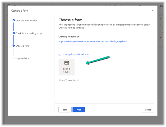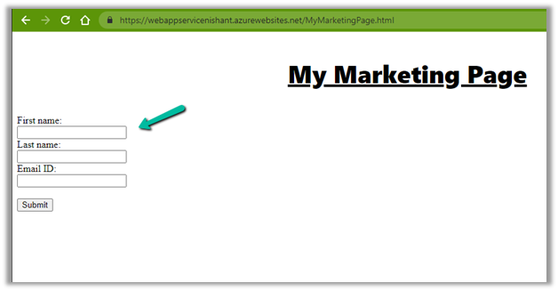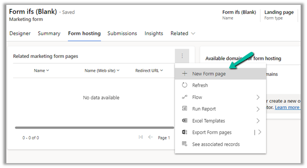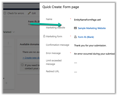 Here while creating a new form page, we have associated it with the marketing website we had created earlier.