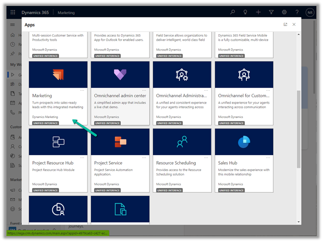 Clicking on Begin opens the Dynamics 365 Marketing App.