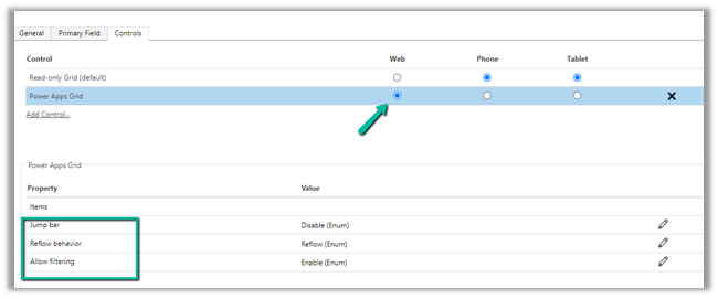 Select the Power Apps Grid control.