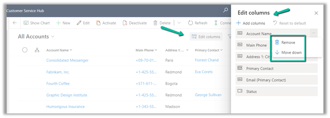 We can use Edit Columns to add, remove and order the columns for the view