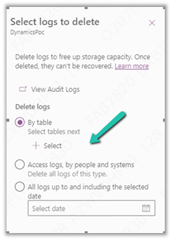 Click on Delete Audit Logs. We will be prompted to filter the logs to delete. Filter options may include: