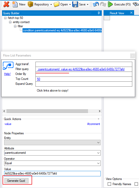 Create the query with link entity in our favorite FetchXML Builder and click on Power Automate Parameters