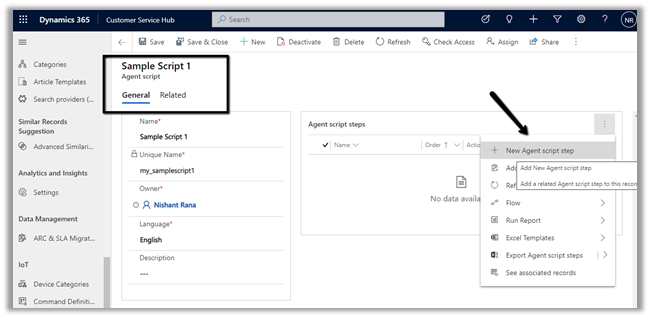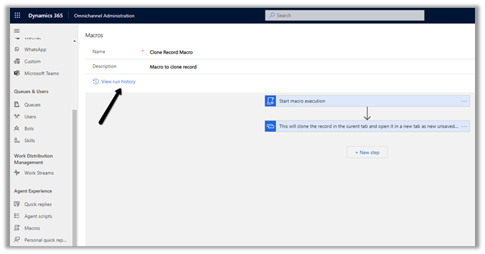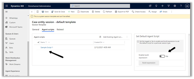 The other sections Context Variables, Smart assist bots, and Quick replies are not available that we saw for messaging type workstream, considering we are not having any conversation here.