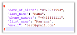 Below is a sample format in which we’d get the lead data for the FB form having a first name, last name, date of birth, and email fields in it.
